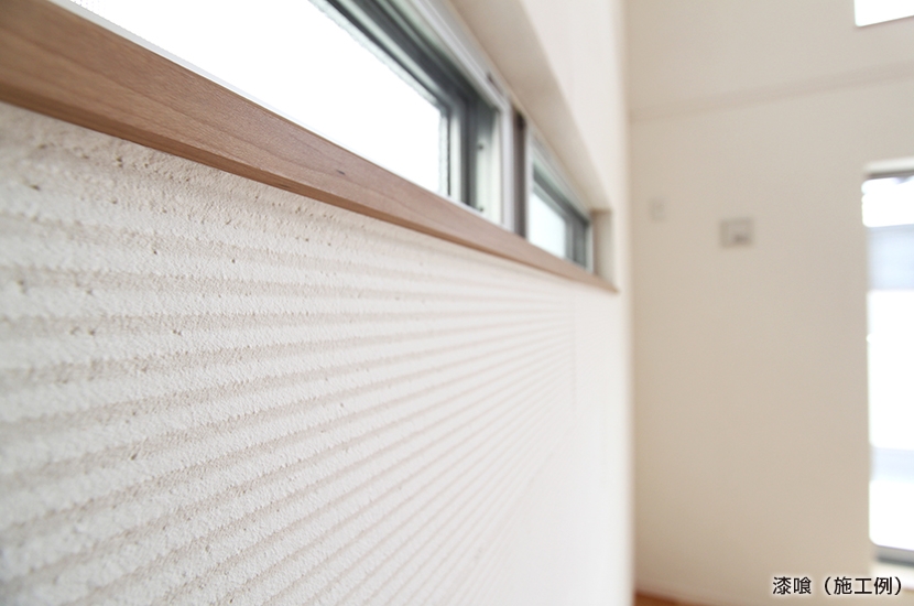 室内の壁に自然素材の漆喰をふんだんに使用した、女性に優しい自然素材の家。