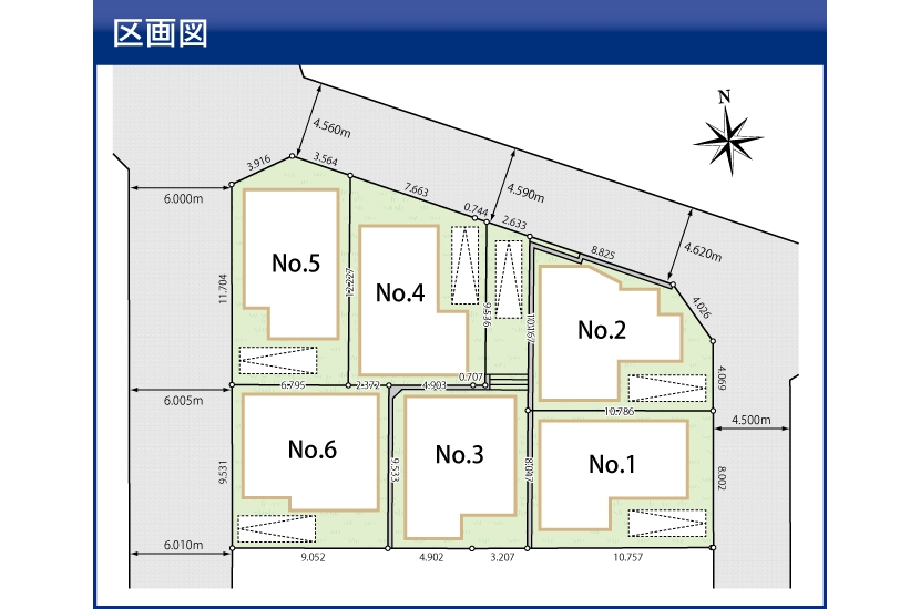 【道路】 ①②号棟:東側4.5m・②~⑤号棟北側4.560~4.620m・