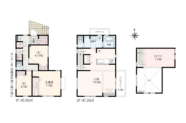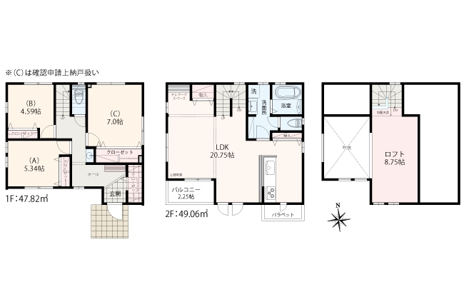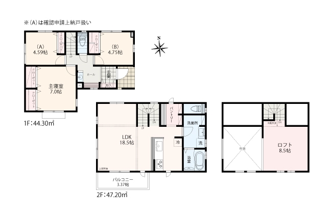 ランドリーラック、固定階段大型ロフトなどを設置した建売分譲住宅です。
