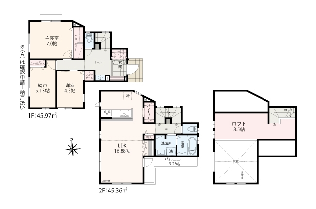 【建物面積】 91.33㎡(27.62坪)~96.88㎡(29.30坪)